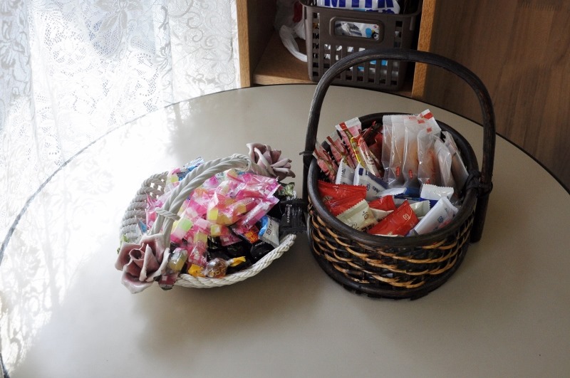 普段はあめ玉だけですが、最終日の昨日はクッキーなどのご褒美バージョンです。