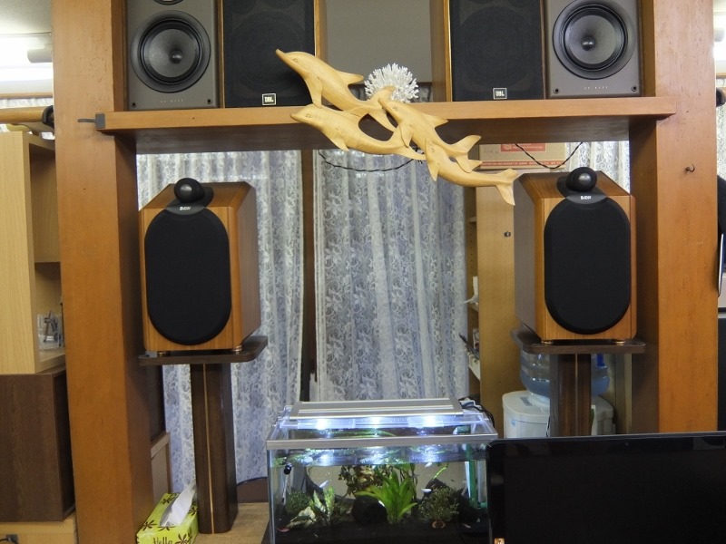 そこでこのDNP-720SEを中心にオーディオシステムを組み直すことにしました。アンプを1台減らし、使っていなかったDAC(デジタルアナログコンバータ)を引っ張りだして3台のアンプで5セットのスピーカーを駆動出来るようにしました。スピーカーも音質もさることながら見た目の貫禄でセンター位置を保っていたダイヤトーンDS-A7から音質を重視し、W&BのCDM-1NTに変更です。