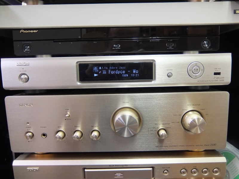 最近あまりさわっていなかったオーディオ機器ですが、前から気になっていたデノンのDNP-720SEというネットワークプレイヤーが実売価格20,000円(定価5万)まで下がってきたので、買ってみました、新年ですしね。ネットワークプレイヤーとはLAN対応の音楽ファイル再生機のことですが、購入は大正解でした。FLAC形式の音楽ファイルをダイレクトに再生できるので、ミュージックサーバー(要はLAN対応外付けHDD)に音楽ファイルを落とし込めば、パソコンに依存せずに曲を再生できます。パソコン経由でWindows Media Player や iTunesを使って再生するより上の音質になりました。そしてインターネットラジオもダイレクトに再生できるのですが、このインターネットラジオの恩恵が何より凄いのであります、ハイ。例えばアメリカの「1.fm」というラジオ局はジャズやクラシックはもちろん、様々なジャンルの音楽を笑っちゃうほどの高音質(CDを完全に凌駕しています)で、DJの余計なおしゃべりもCMもなく、それぞれノンストップで流しています。各ジャンルもジャズならボーカル専門とスムースジャズ、クラシックならバロック系とそれ以外に分かれているなど文句のつけようがありません。
