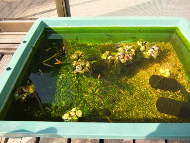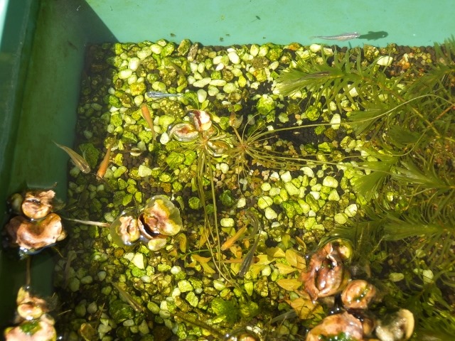 冬枯れした水草の陰に隠れていたメダカ達が動き始めました。