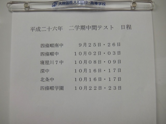 二学期中間テストが始まりました。早いところは9月25・26日(もう終わったわけです)遅いところは10月22日~24日となり、順次テスト対策に入っていきます。中間テストは1か月にわたり各校バラバラな日程ですが、なぜか期末テストは全校11月26日から実施なのが不思議であります、ハイ。いずれにせよ二学期は各教科重要単元が多いですし、試験範囲も広く大変ですので必死に頑張ってもらわなければなりません。特に3年生はこの学期で内申評定がほぼ決まりますので「1点でも多く」の気合が必要になります。