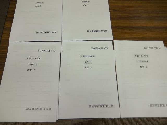 先週末で私立中学をのこし、公立中学校の中間テストが終了しました。先行していた四條畷・寝屋川の中学校はもう結果が出ていて、現状維持が1名、他2名はそれぞれの目標点数を軽々と越え、結果を出してくれました。一番人数の多い大東市の中学は今週中に結果が判明しますが、正直、期待と不安が半々です。各校でテスト実施日が極端に違いますが、何故か期末テストの日程は全校が11月26日からなのが不思議でなりません。9月に中間テストが終わっている学校は膨大なテスト範囲となりますので、今から本当に恐ろしです、ハイ。F中の修学旅行日程もそうでしたが、どうも学校行事や学校側の事情が生徒より優先されているのが気になります。次々と変わっていく大阪の公立高校入試の仕組みも子供達の為ではなく、大人(行政)の一方的な「思い込み」と「過剰な期待」の結果だと思います。当塾は小さな個人塾ですので、個々の塾生の事情や状況に合わせて運営するようにしており、クラブ活動や他の習い事による授業時間帯変更や急な欠席振替にも出来るだ柔軟に対処していますが、学習態度や姿勢、意欲についてはこれまでどおりに塾側(つまり私の)「一方的かつ独善的」な「思い込み」で大声を張り上げていこうと思っています。