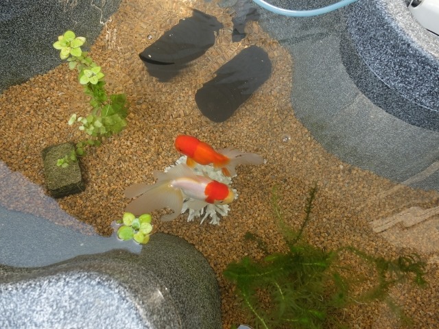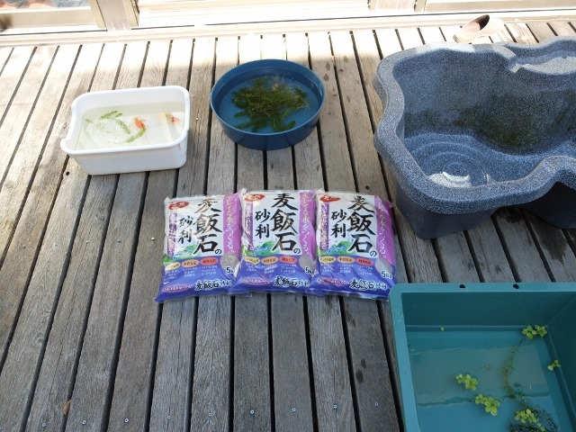 そこで、少なくても来春までは金魚とメダカ&ヌマエビを分離すことにし、野外水槽の底砂をメダカ用の赤玉土から、金魚用の砂利に変える為に水槽リセットしました。半日がかりとなりましたが、孵化した稚魚は10数匹ほど教室内の水槽に避難させていましたし、ヌマエビも10数匹が何とか生き残っていましたので再生は可能だと思います。今週の週末は教室内の水槽もリセットしようと思っています。やはり、半年に1度はリセットしないと見た目の美しさは保てません、住人達には迷惑でしょうがね。