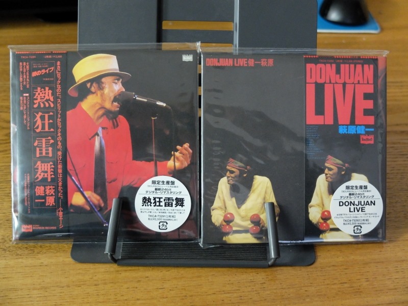 “ショーケン”こと萩原健一さん。最近はTVでも映画でもほとんどお目にかかる機会が亡くなってしまいました。私は中3の時に「傷だらけの天使」をリアルタイムで見て以来のファンで、私にとって「格好いい男」は長らく“ポール・ニューマン”と“ショーケン”でした。そんな“ショーケン”の初ソロライブアルバム「熱狂雷舞」は学生時代に1番聴いていたLPでしたが数度の引越転居のなかで他のレコードとともにいつの間にか紛失してしまいました。LPは廃盤となり、CD化もされておらず、私の中の“幻の名盤”となってしまいました。