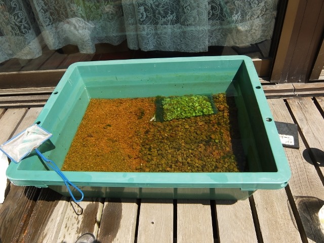 野外水槽も教室内水槽も美しくありません。色々な飼育方法がありますが、私は春と秋の年2回完全リセットすることにしています。住人は迷惑でしょうがね。